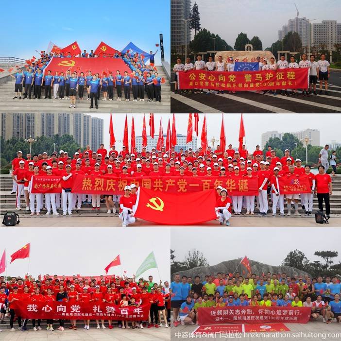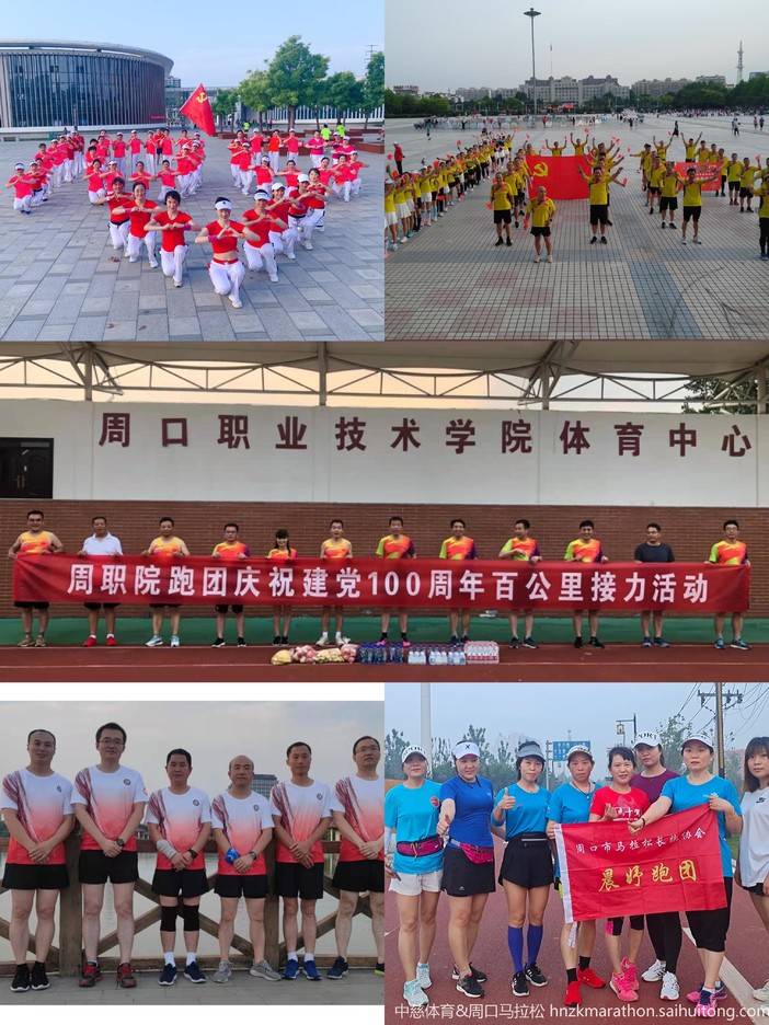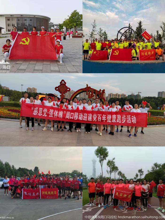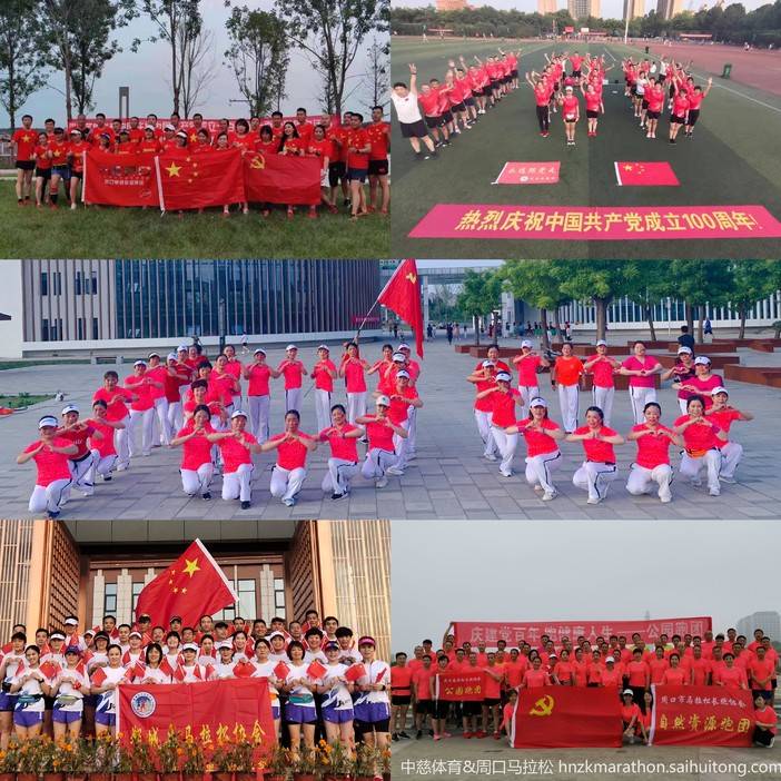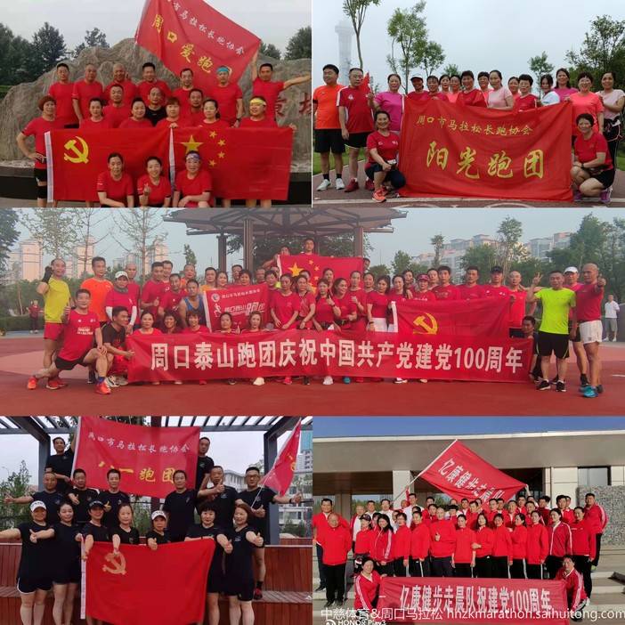 为为庆祝中国共产党成立100周年,传承和发扬共产党员不畏艰难困苦、勇往直前的优秀品质,“七一”前夕,市马拉松长跑协会号召各跑团,各自组织约跑活动庆祝党的生日,推动全民健身。周口公园跑团、三川跑团、周职院跑团等相继开展了100公里接力约跑活动,柒柒女子跑团、南广场群英跑团、自然资源跑团、原动力跑团、中国警官马拉松俱乐部、检察跑团、医师跑团、晨妤跑团、周口爱跑团、美丽跑团、周口移动跑团、周口阳光跑团、八一跑团、阳城跑团、阳城脚步跑团、泰山跑团、南广场晨跑团及各县市沈丘马拉松运动协会、沈丘滨河跑团、鹿邑跑团、太康跑团、郸城县马拉松协会等35个跑团或协会也举行了10-30公里的约跑活动,营造了“爱党爱国、强身健体”的和谐氛围,展现了我市跑步爱好者良好的精神风貌。